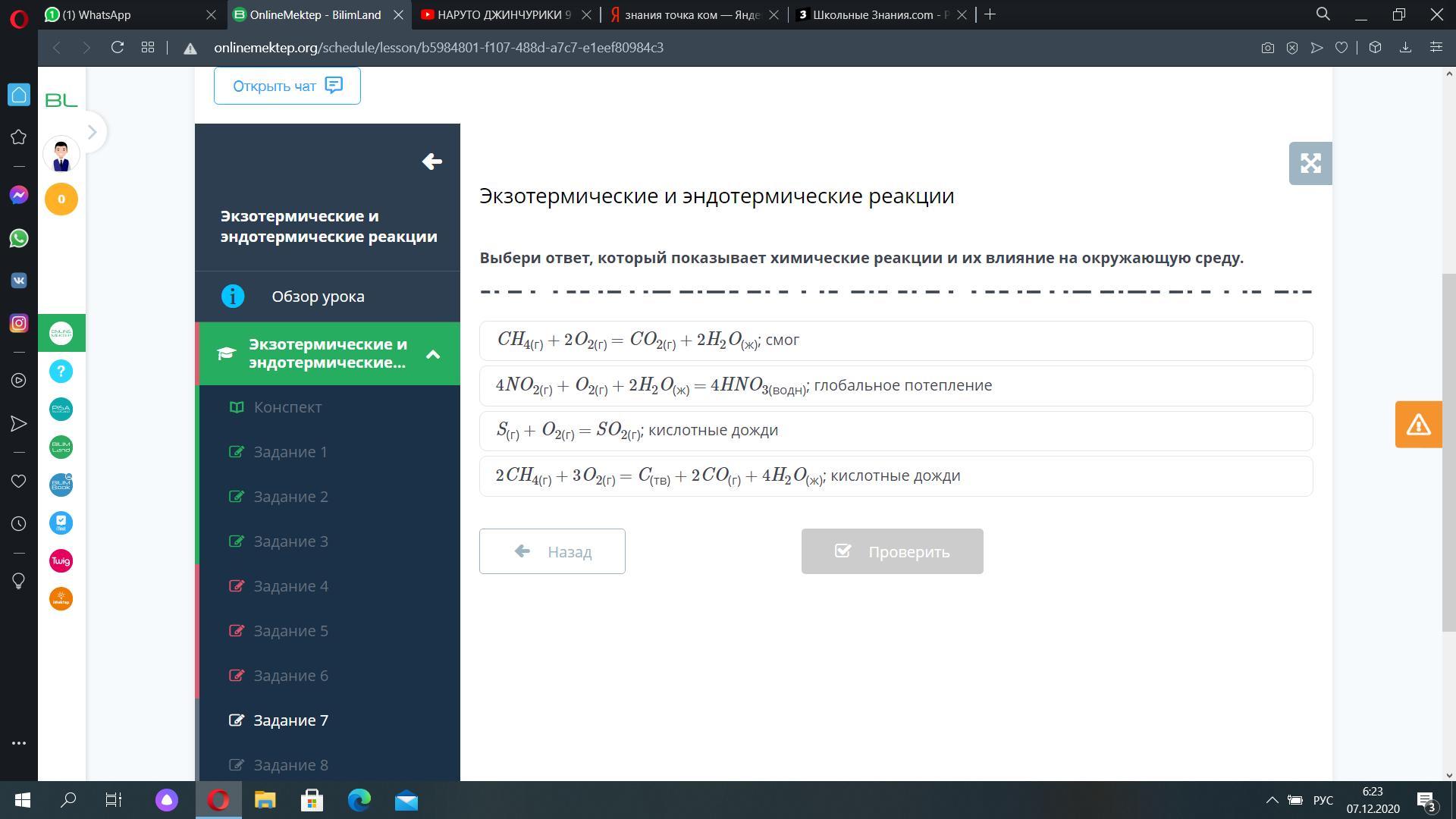 СРОЧНО ! выбери ответ который показывает химичиские реакции и их влияние на окружающую среду .
