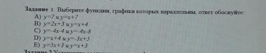 если коэффициенты функций равны(первое число после знака равно),то они параллельны