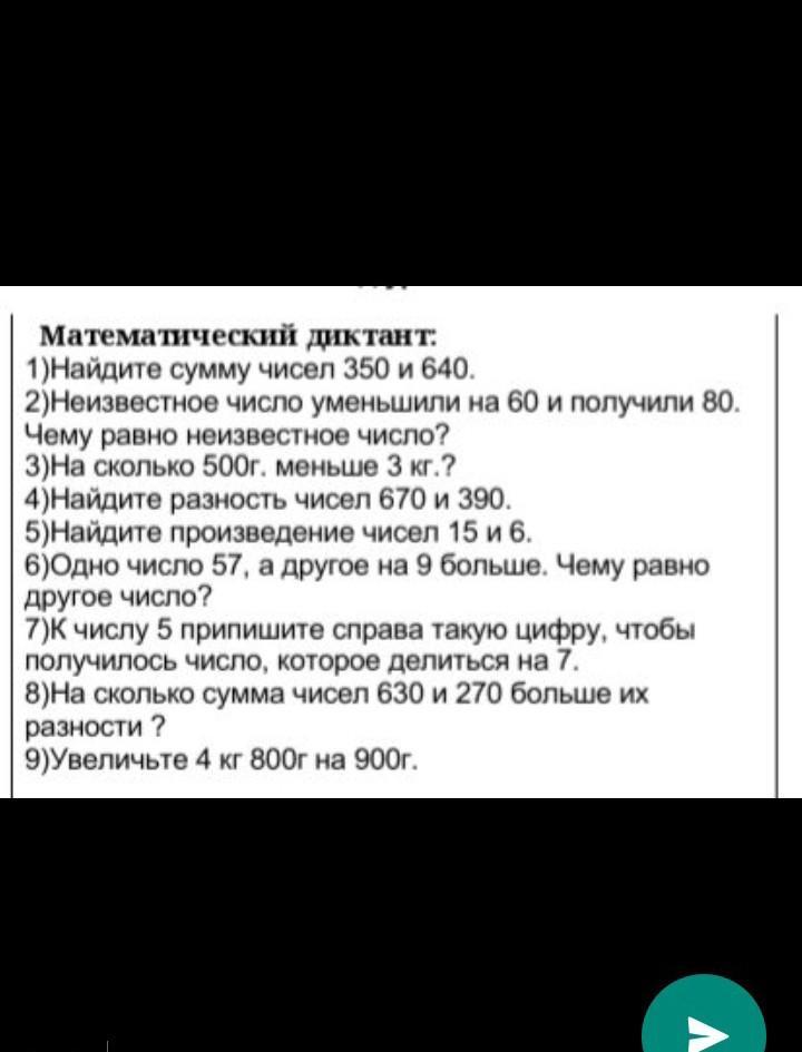 1)990 2)140 3)2.500 Г 4)280 5)90 6)66 7)56 8)900-360=540 9)5кг 700г