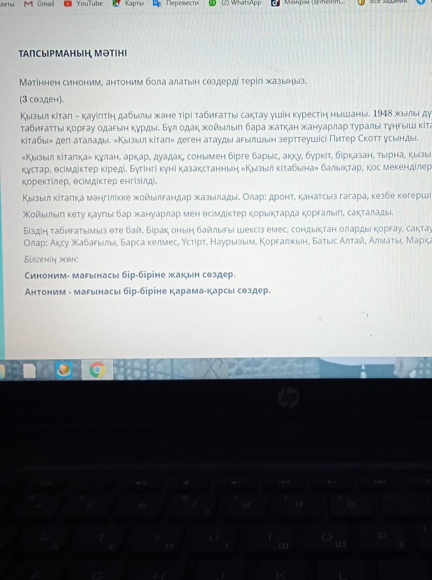 Мәтіннен синоним, антоным бола алатын сөздерді теріп жазыңз.