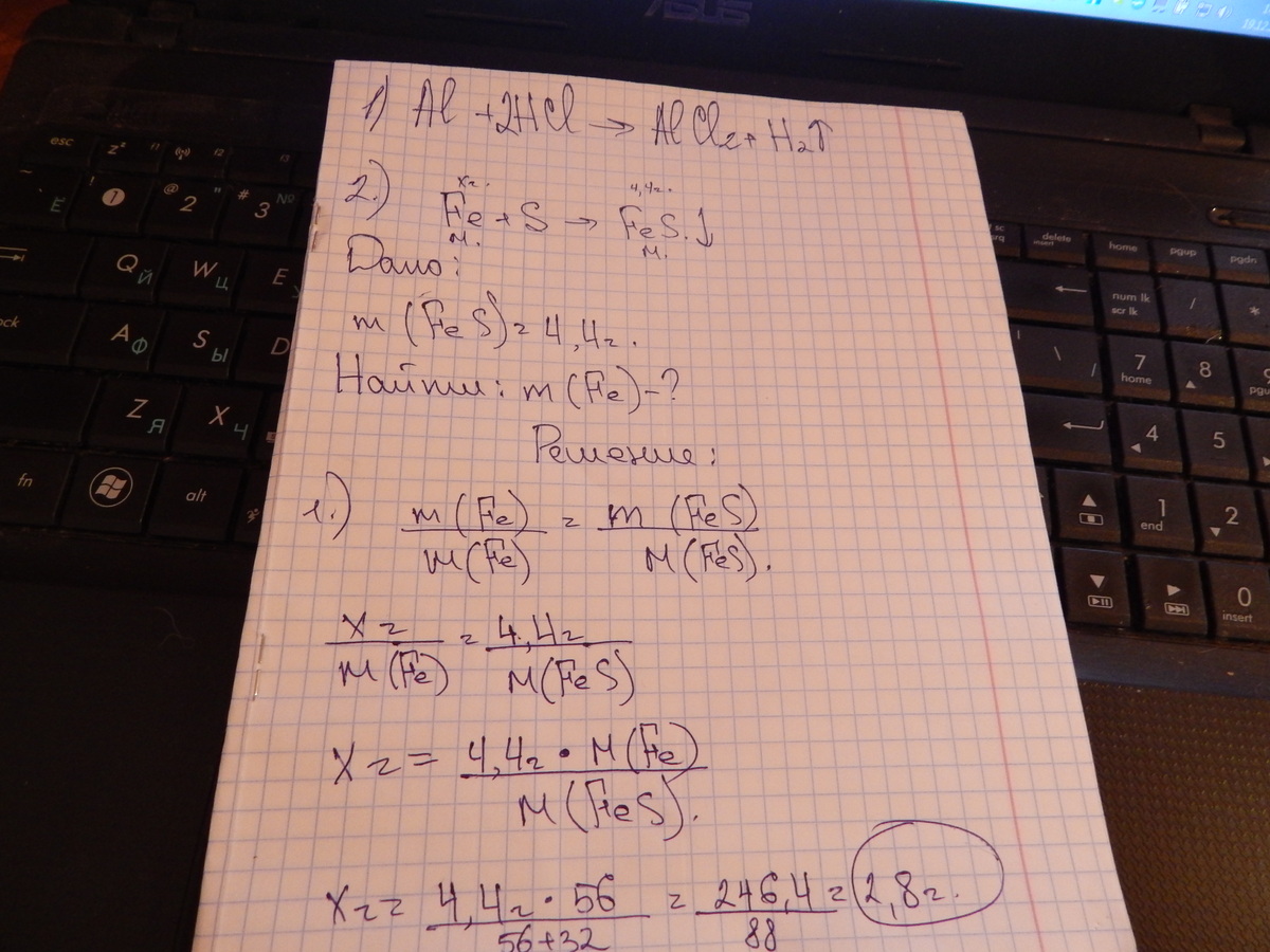 2)Сколько грамм железа необходимо взять, чтобы получить 4,4 г сульфида железа (II).