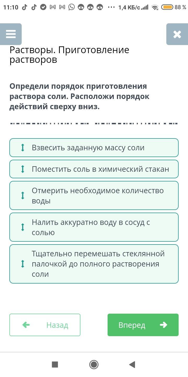 Так 1-взвесить массу 2-поместить соль в стакан 3-отмерить необходимое кол-во воды 4-налить в сосуд 5-тщательно перемещать