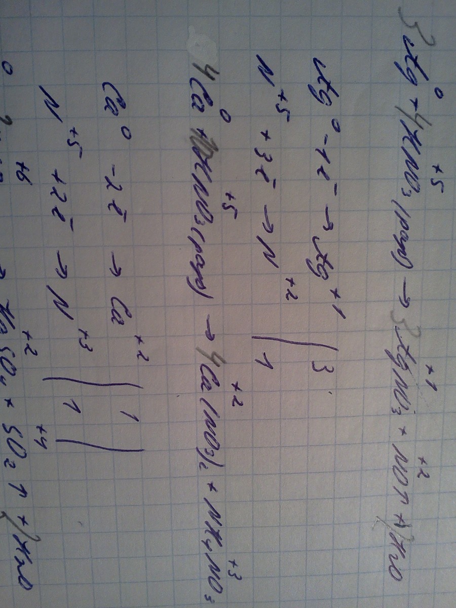 1) Взаимодействие разбавленной азотной кислоты с серебром и кальцием.