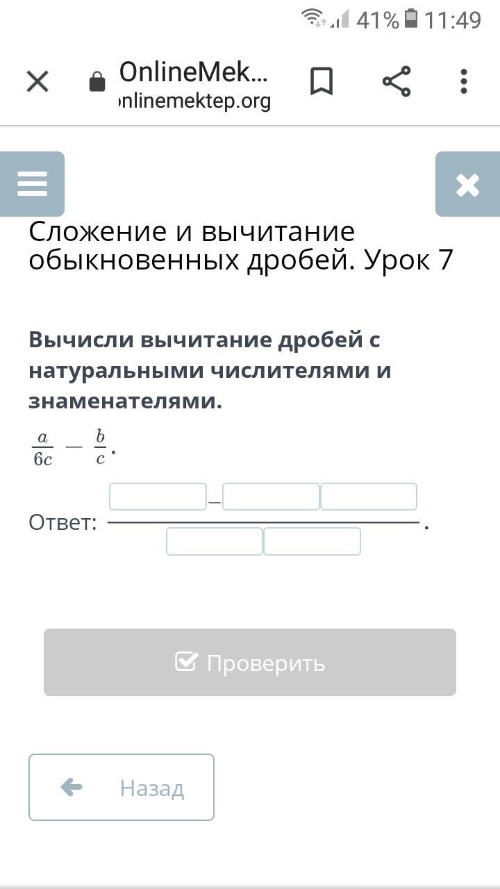 Для того, чтобы вычесть дробь, нужно привести обе дроби к единому знаменателю. В данном случае нам нужно умножить вторую дробь на 6: (b/c)*6=6b/6c.