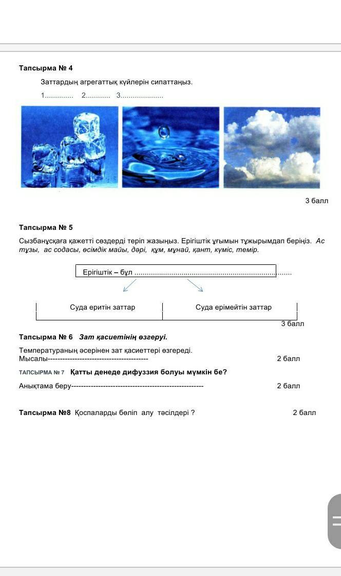 #6 мысал :егер суды тоңазытқышқа салсақ ол қатты болады, ал егер кайнатысак ол сұйық болады.