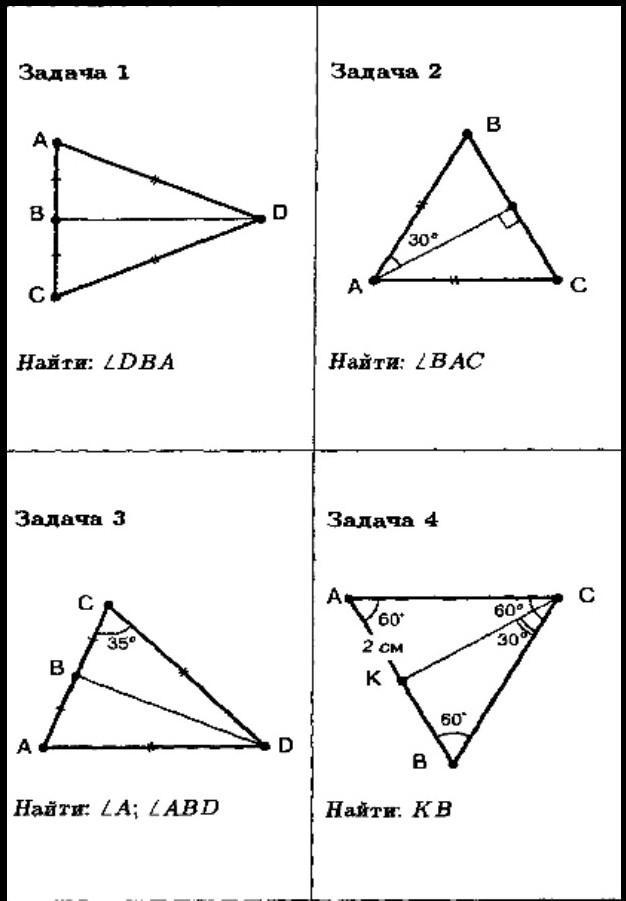 3. На рисунке мы видим, что CD=AD, значит, треугольник равнобедренный. CB=AB, значит, AD медиана и одновременно высота (смотри задачу 1). Значит, ∠ABD=90°. Углы при основании в равнобедренном треугольнике равны, значит, ∠A=∠C=35° (по условию задачи).