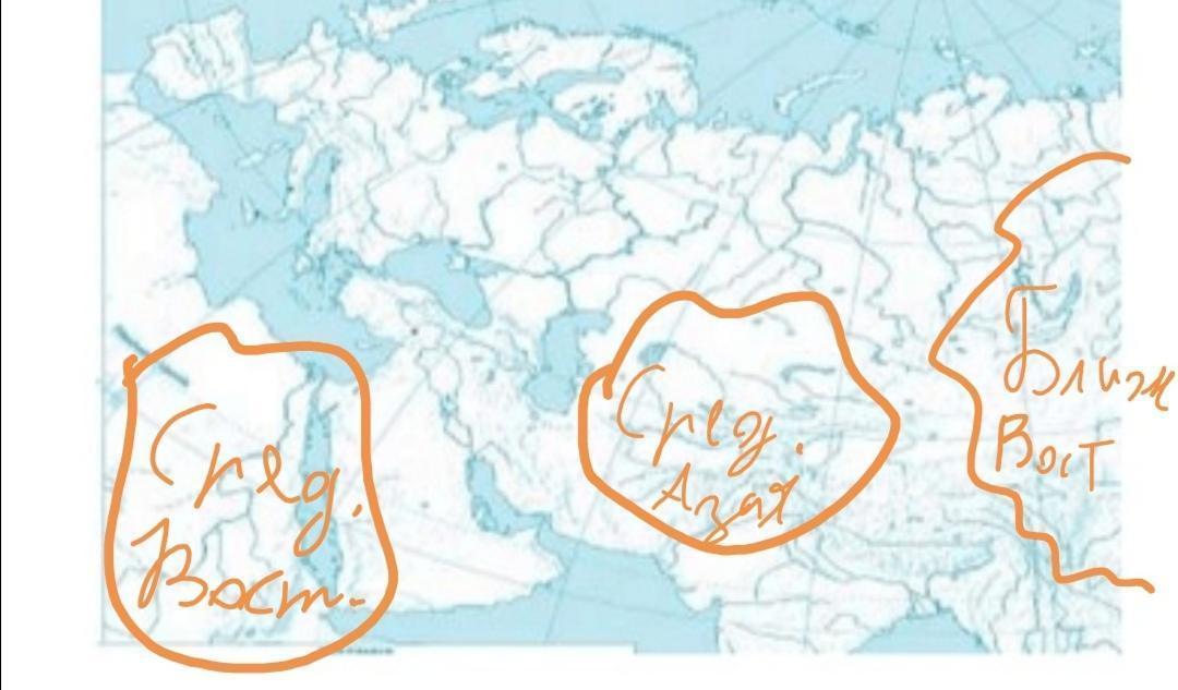 2. На контуной карте обозначьте границы государств Ближнего, Среднего Востока и Средней Азии.