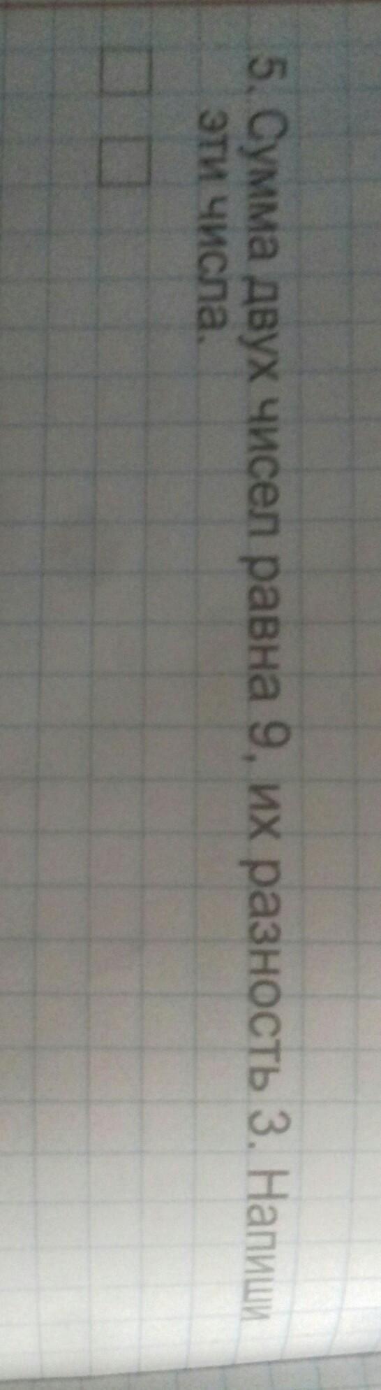 5. Сумма двух чисел равна 9, их разность 3. Напии