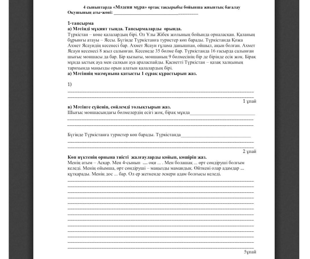 Менің атым - Асқар. Мен 4-сыныпта оқимын. Мен болашақта өрт сөндіруші болғым келеді. Менің ойымша өрт сөндіруші - маңызды мамандық. Өйткені олар адамдарды құтқарады. Менің досым бар. Ол ер жеткенде әскери адам болғысы келеді.