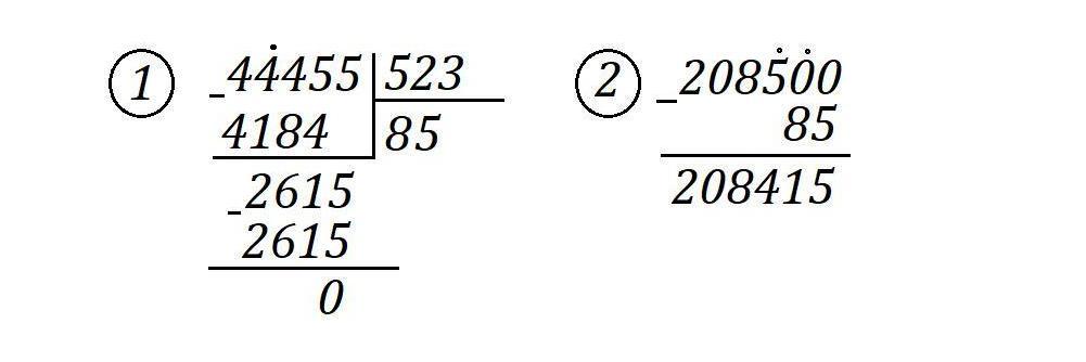 Значит частное чисел 44 455 и 523 - 44 445 : 523