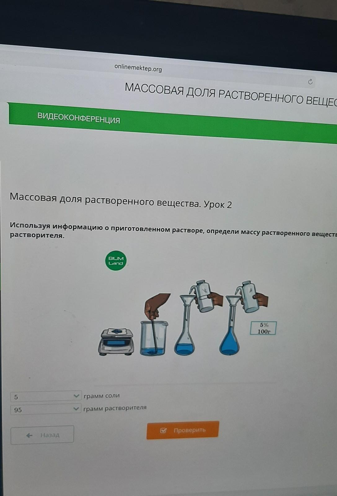 Используя информацию о приготовленном растворе, определи массу растворенного вещества и