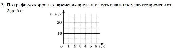 2. По графику скорости от времени определите путь тела в промежутке времени от 2 до 6 с.