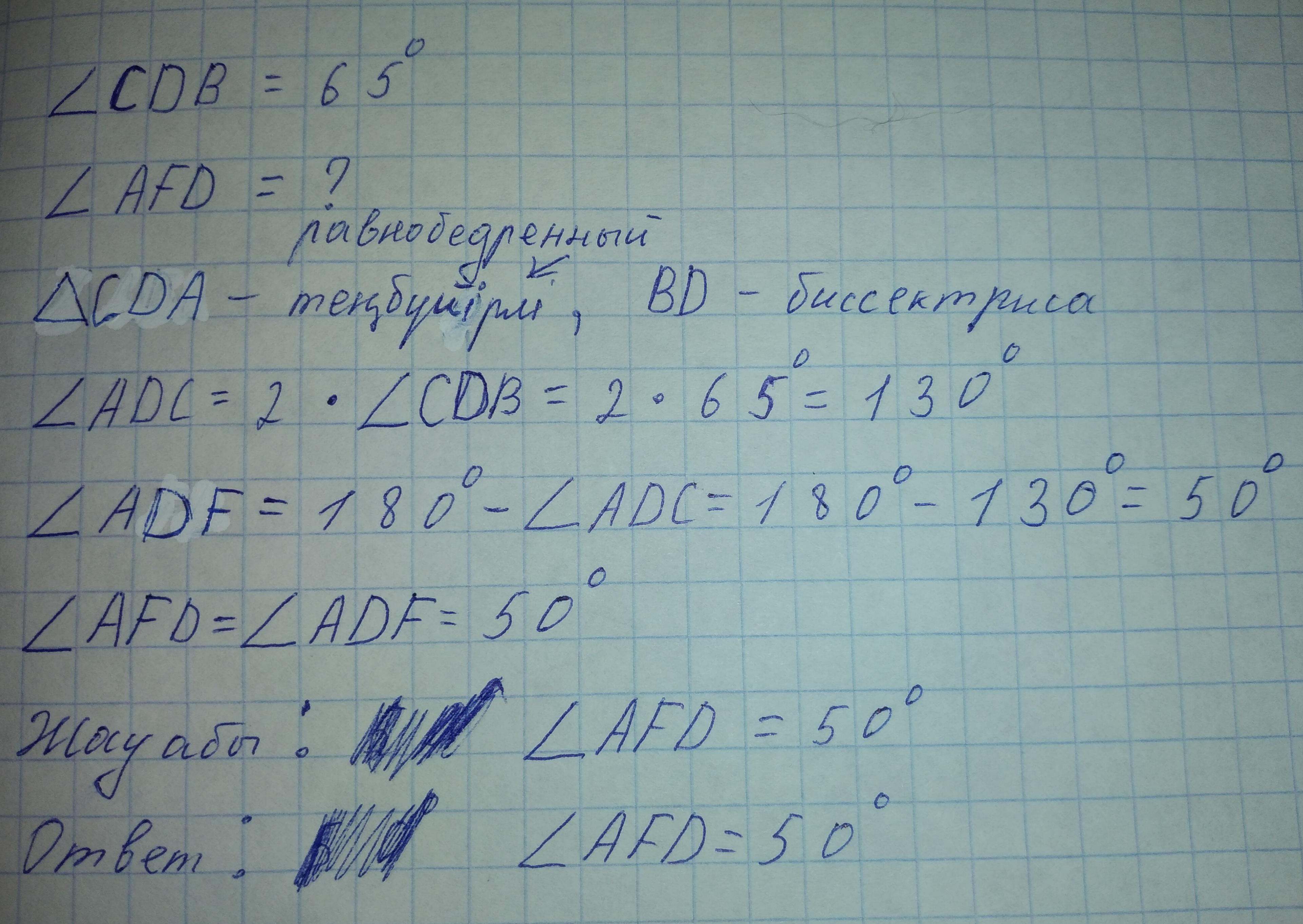 Используя данные на рисунке 2 и CDB = 65, ∠AFD