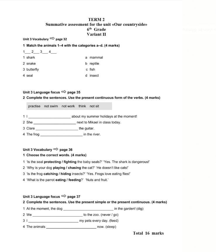 Summative assessment for the unit «Our countryside»