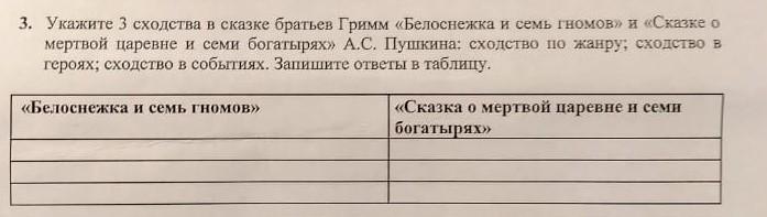 Укажите 3 сходства в сказке о мертвой царевне и белоснежке и семи гномов по жанру, героям, событиям