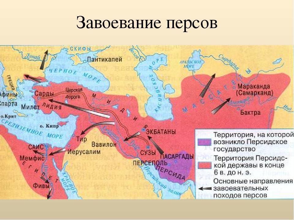 - В-третьих, стоит посмотреть на то, как расширилась территория Персии. Его границы теперь простирались от Черного, Средиземного морей до Каспийского моря, от Фив до Самарканда.