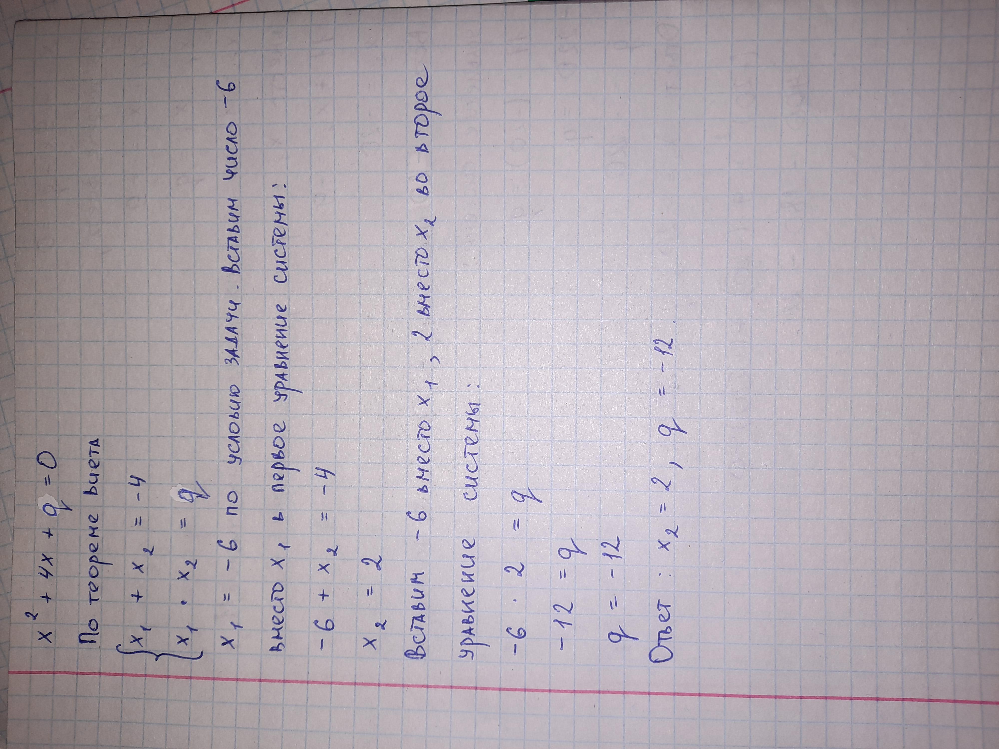 Число – 6 является корнем уравнения x + 4х + 4 = 0. Найдите второй корень уравнения и значение q , используя теорему Виета .
