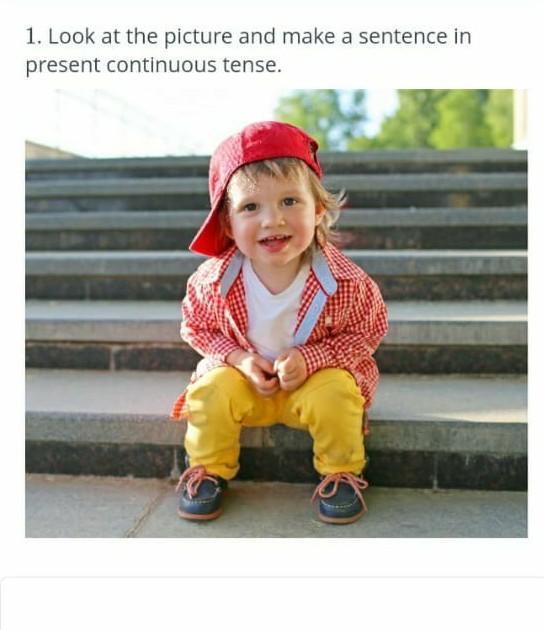 Cute little boy is sitting on the stairs and looking at me.