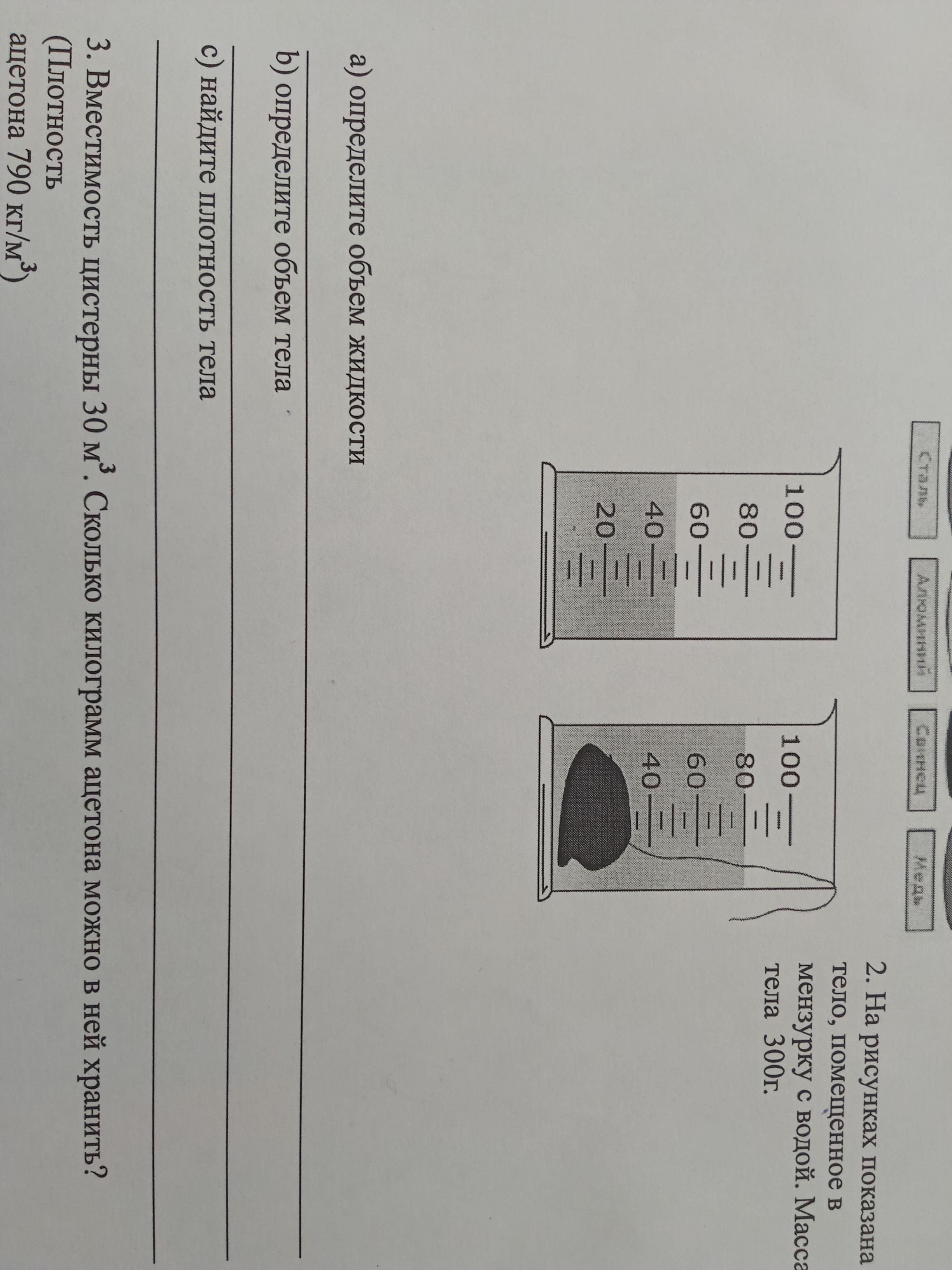 р=m/Vтел=0.3/(30*10^-6)=10000 кг/м3