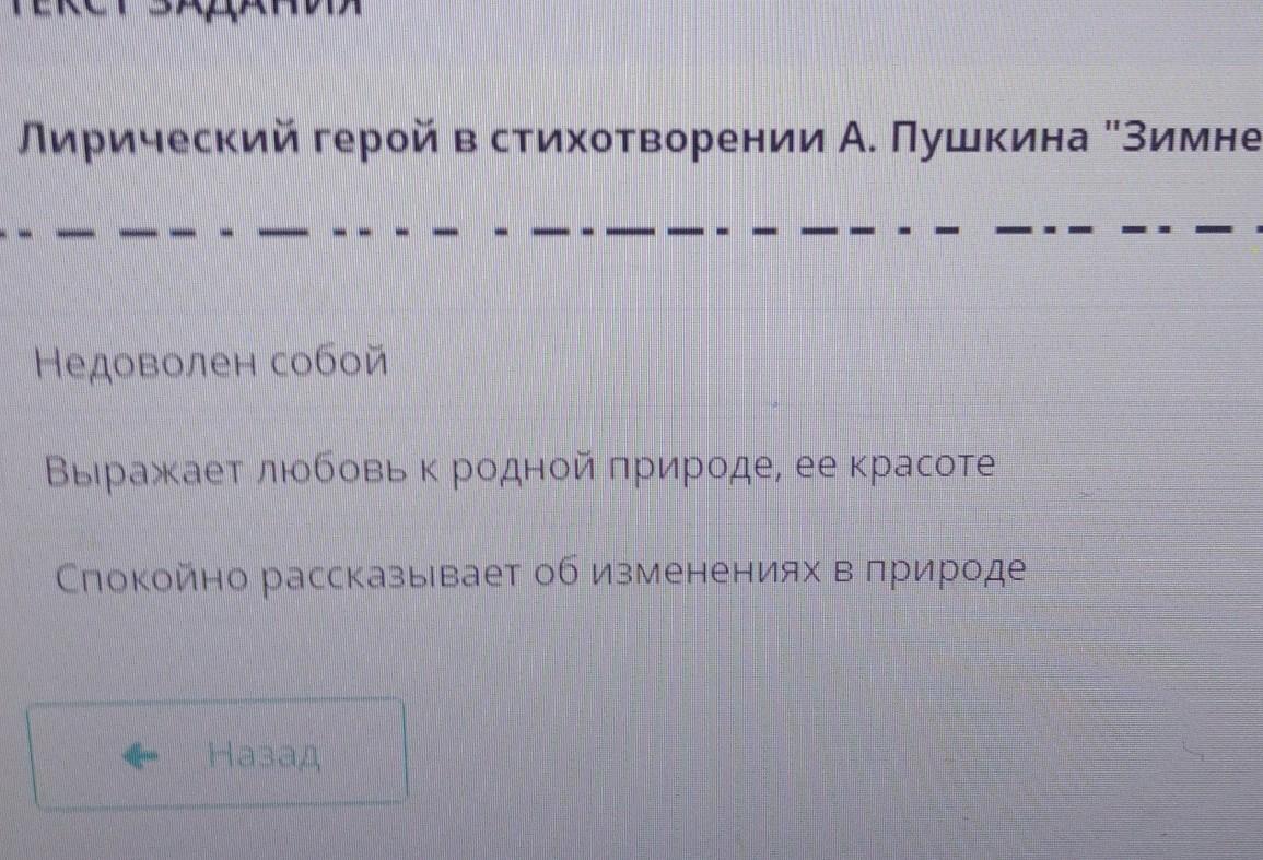 Лирический герой в стихотворении А. Пушкина "Зимнее утро":