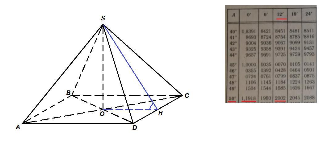 или точнее ∠SOH ≈ 50°12'