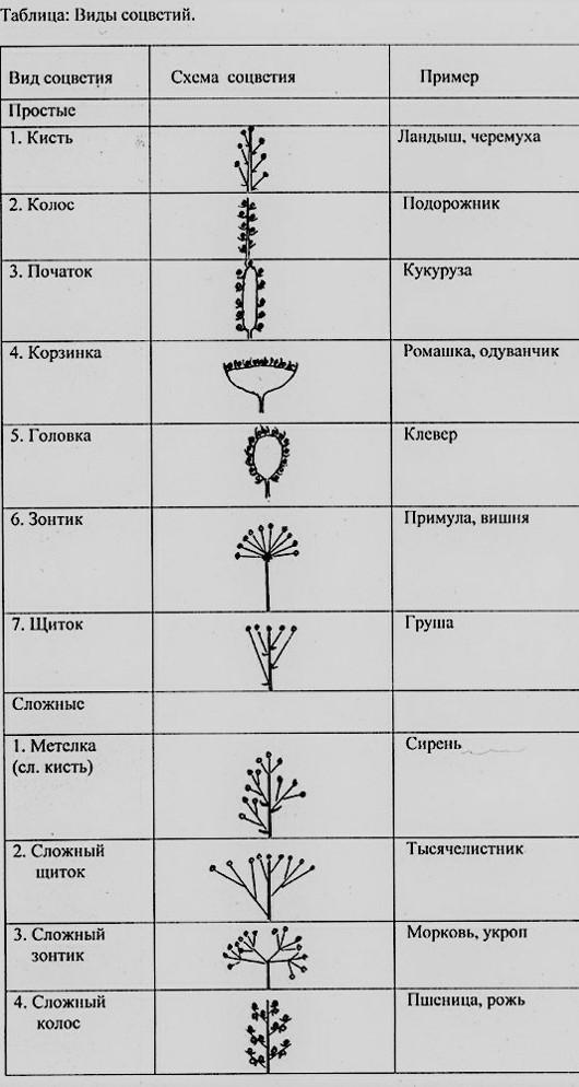 Письменно ответить на вопрос « Что такое соцветие и какую функцию выполняет?».Зарисовать виды соцветий.