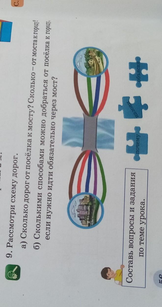 1. От села до моста- 4 дороги. От моста до города- 5 дорог.