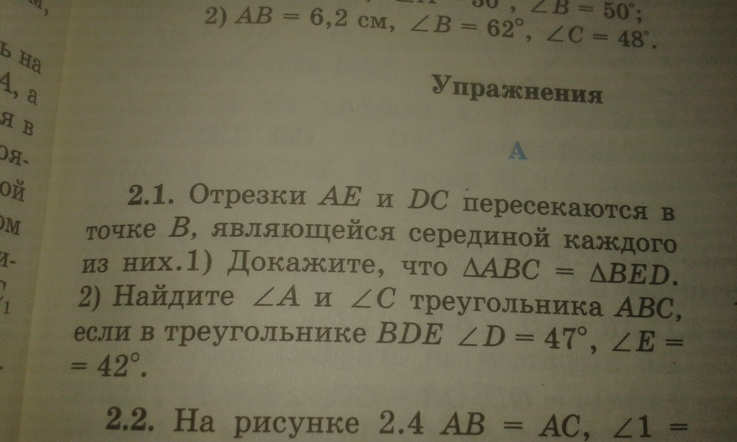 б) Поскольку ΔABC=ΔBDE, то ∠A=∠E=42°