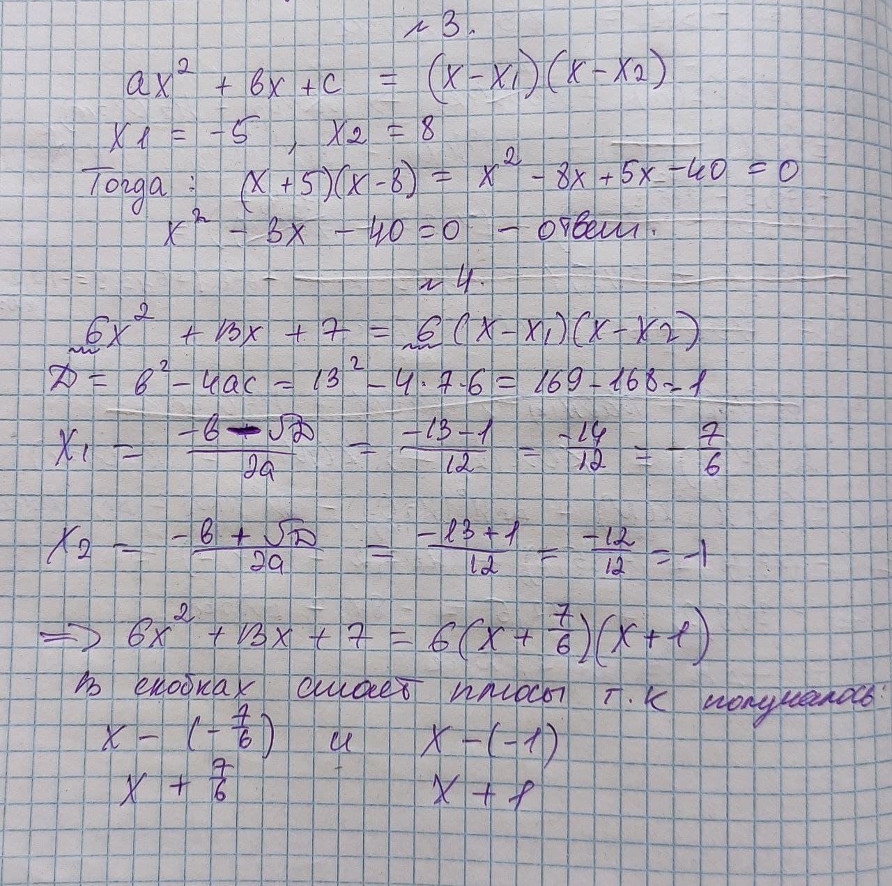 4. разложите разложите на множители квадратных трехчлен: 6х^2+13х+7.
