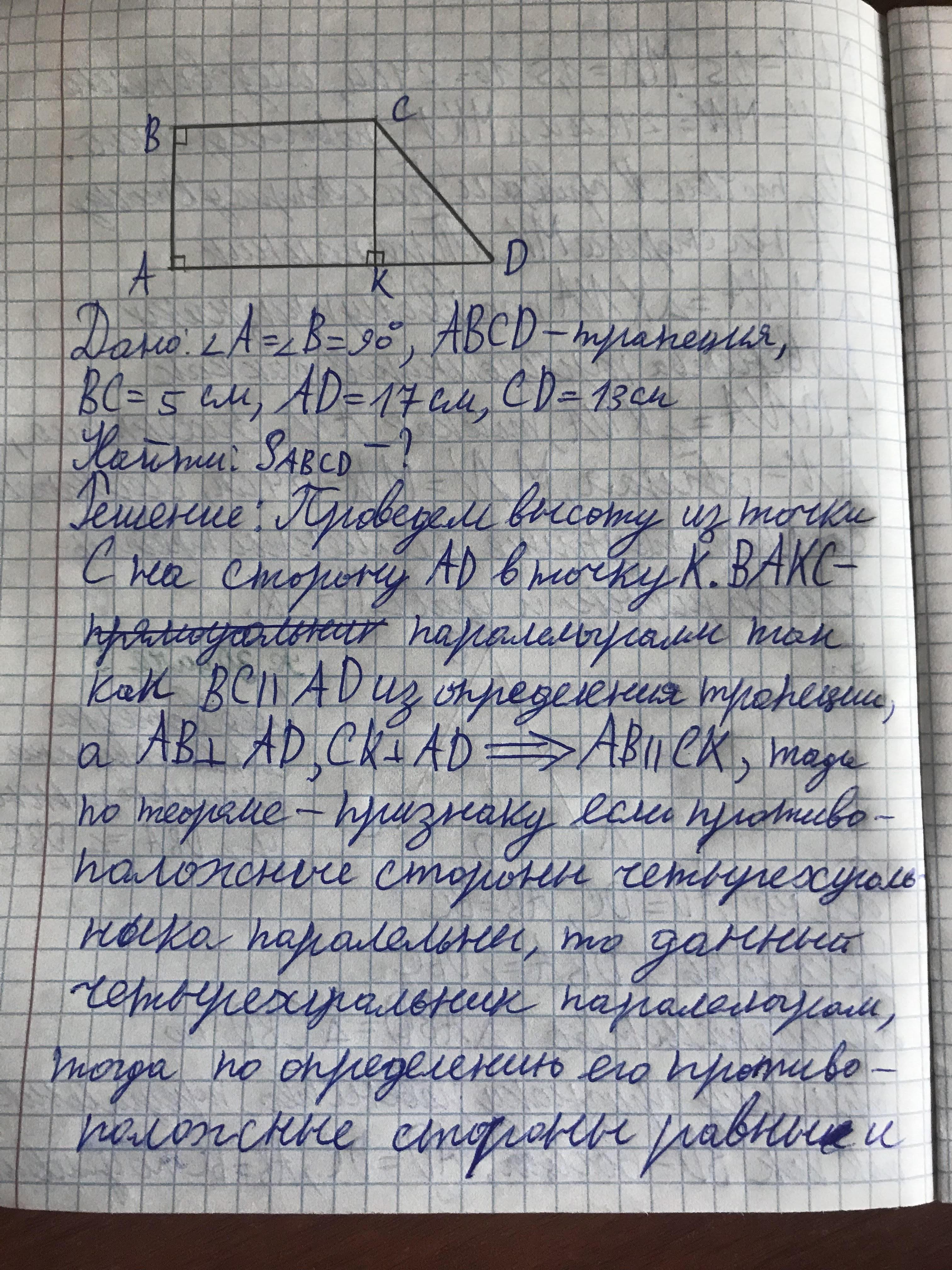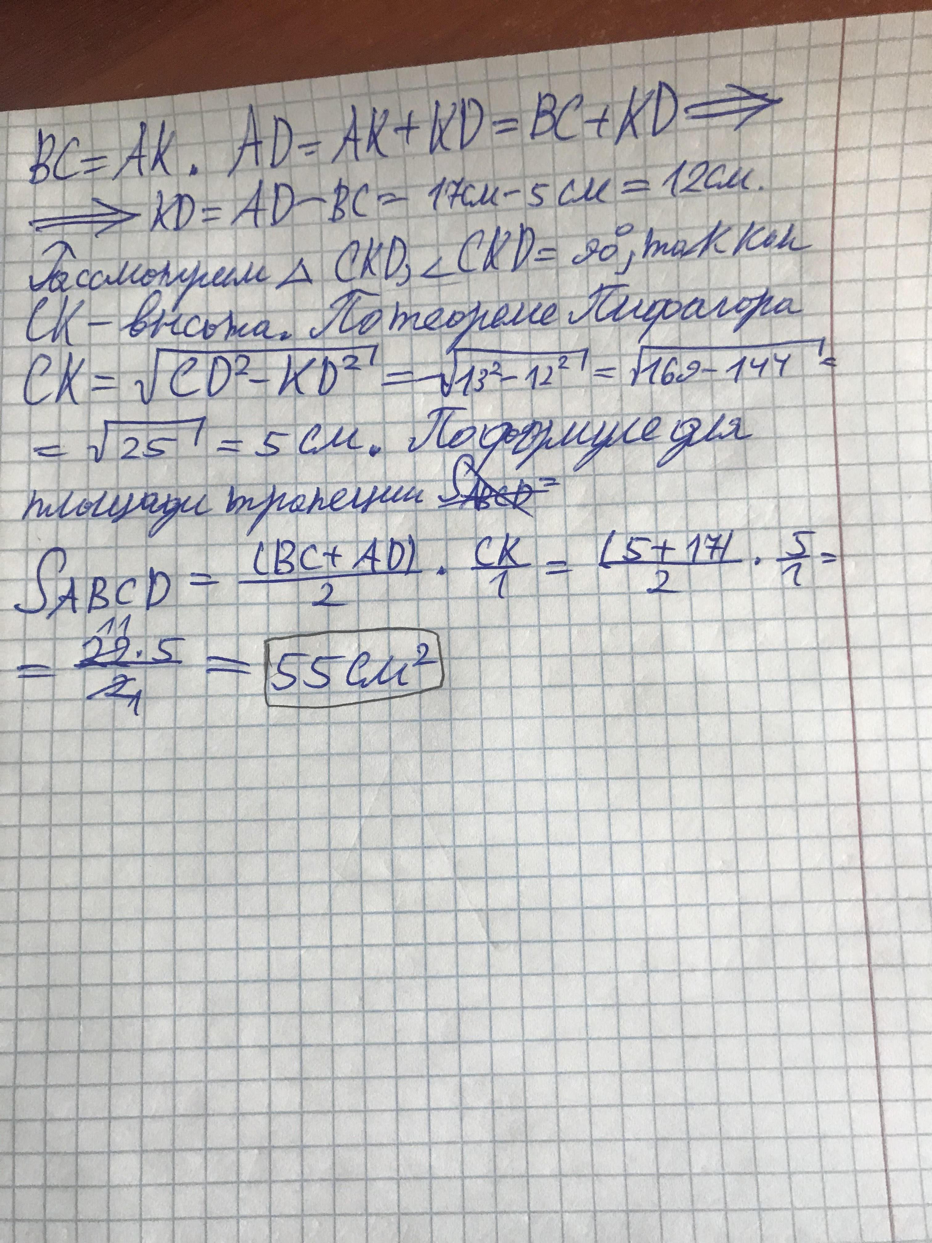 квадрат гипотенузы равен сумме квадратов катетов). В прямоугольной трапеции основания равны 5 и 17 см, а большая боковая