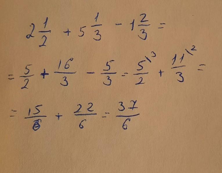 2 1/2+ 5 1/3 - 1 2/3= 1/6 это ответ