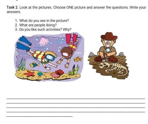 2.He studies and searches for dinosaur bones 3.I like activities. Because, аctivities helps others and you too