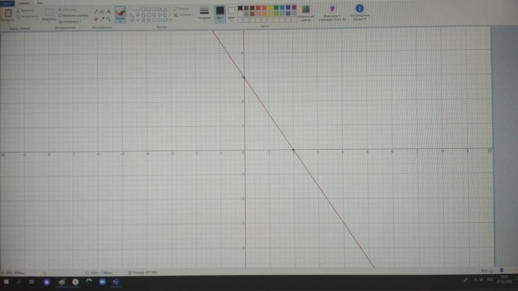 Построим прямую с помощью углового коэффициента и пересечения с осью Y или опираясь на две точки.