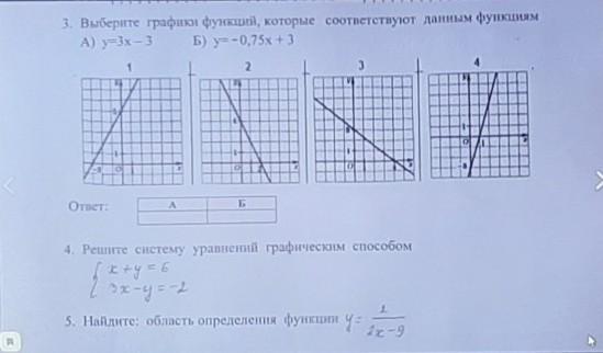 А) у=3·x-3 Б) у=-0,75·x+3.