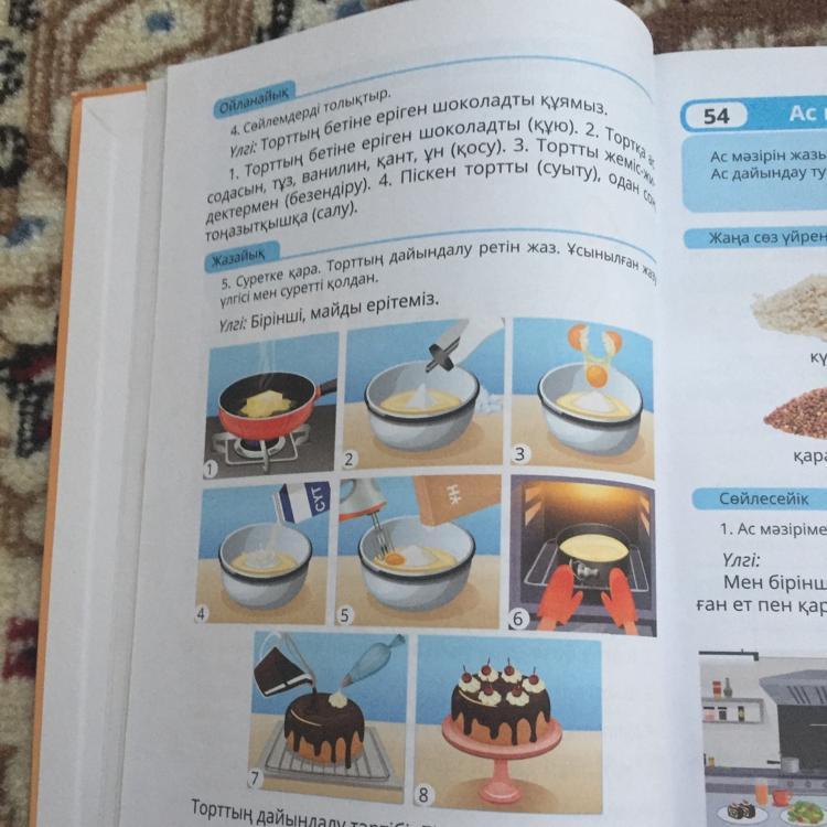 5. Суретқе қара Торттың дайындалу ретін жаз Ұсынылған жазу үлгісі мен суретті қолдан
