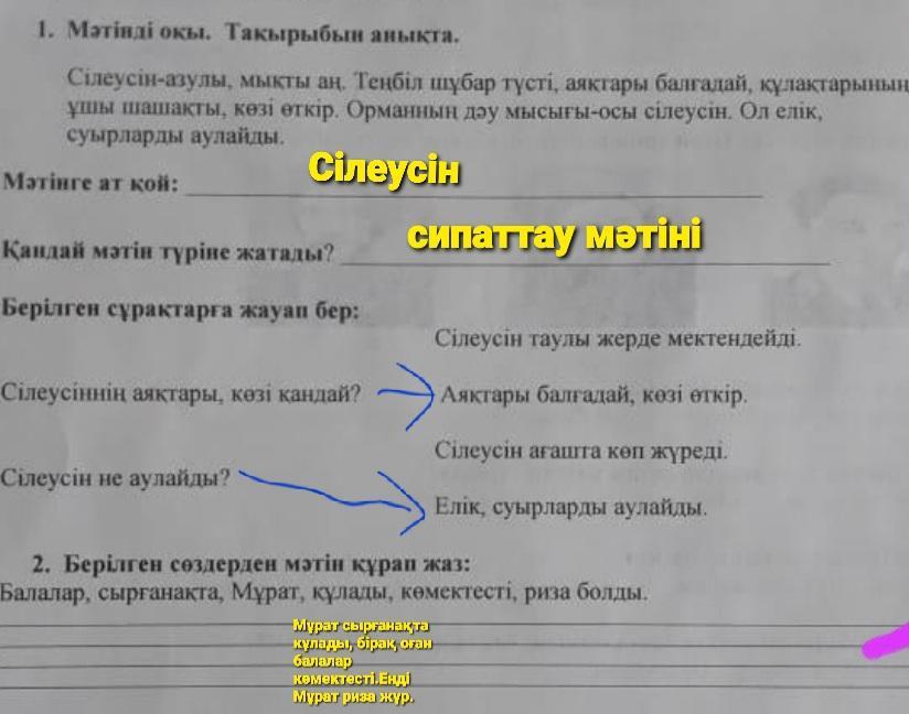 Сілеусіннің аяқтары, көзі қандай? Аяқтары балғадай, көзі өткір.