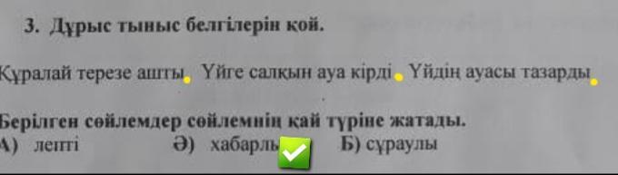 Құралай терезе ашты. Үйге салқын ауа кірді. Үйдің ауасы тазарды.