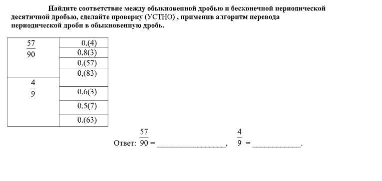 \dfrac{57}{90}=0,6(3)\ \ ,\ \ \ \ \dfrac{4}{9}=0,(4)