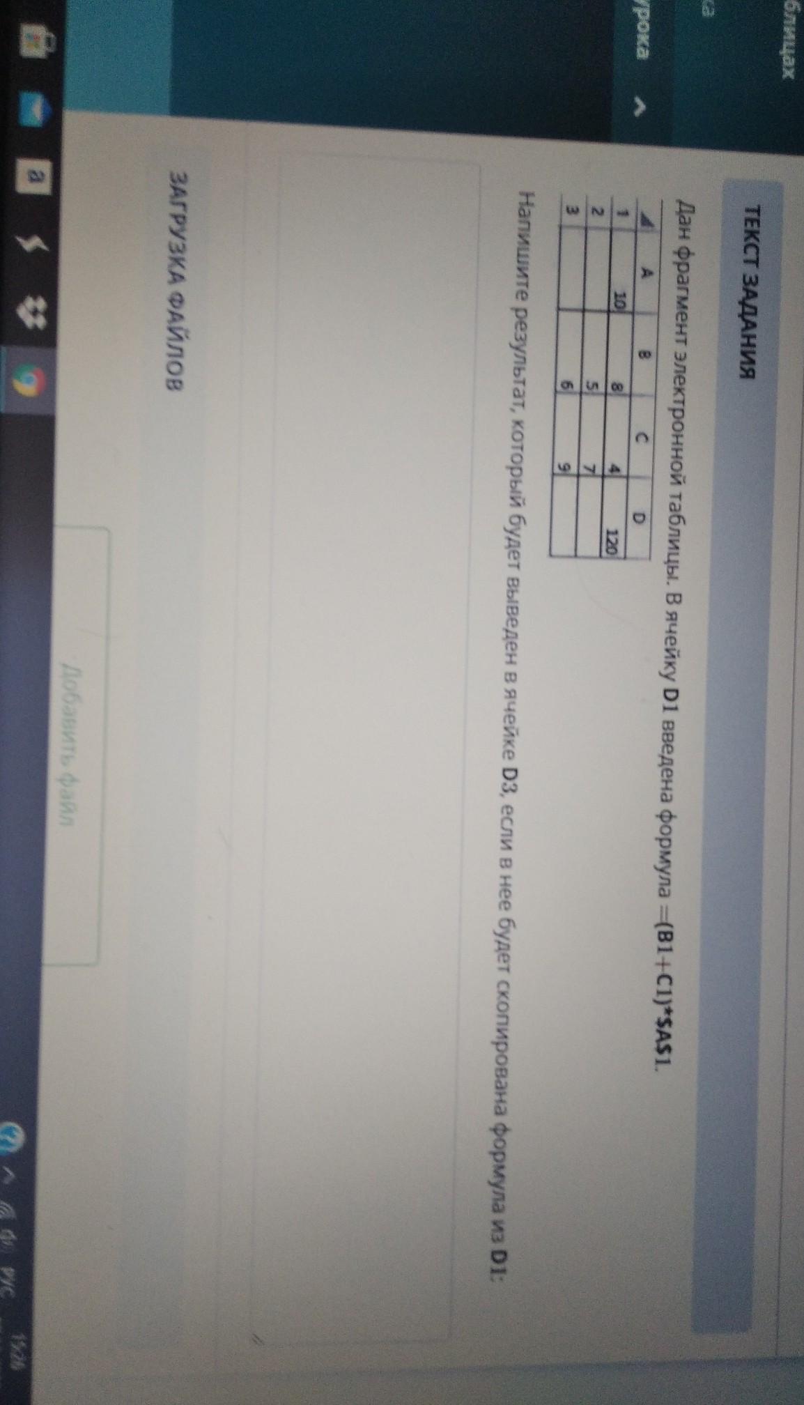 дан фрагмент электронной таблицы в ячейку D1 введена формула (B1 +C1)*$A$1