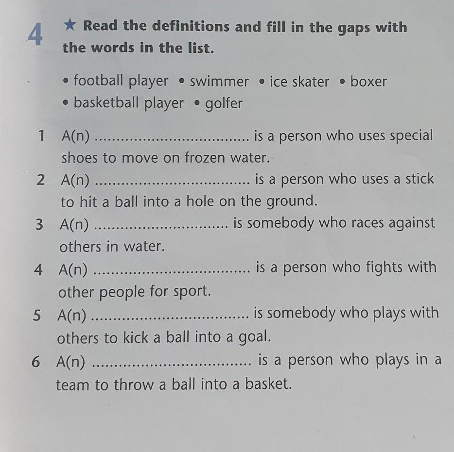 * Read the definitions and fill in the gaps with