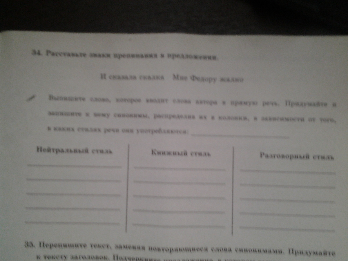 Выпишите слово,которое вводит слова автора в прямую речь.Придумайте и запишите к нему синонимы,распределив их в колонки,в зависимости от того,в каких стилях речи они употребляются : ....................