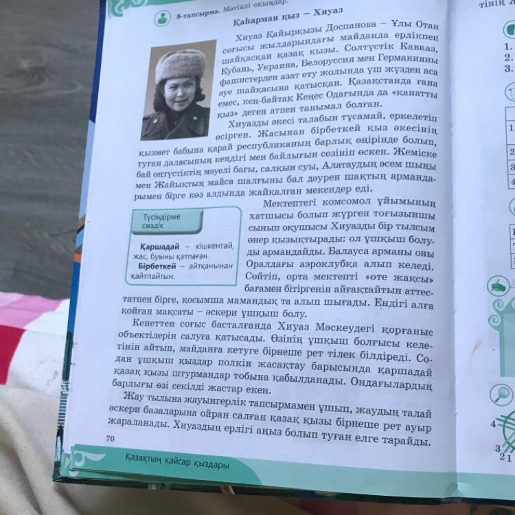 Мәтін мазмұнына сүйеніп, кестеге сәйкес Хиуазға мінездеме