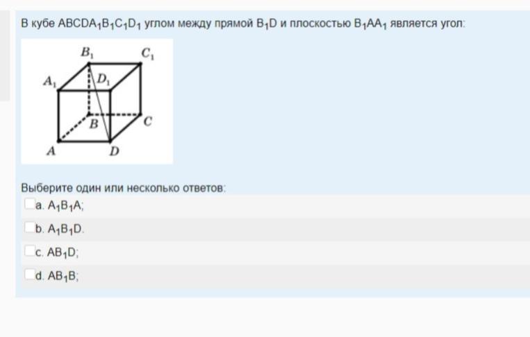 Ответ с, т.к. АВ₁ является проекцией В₁D на плоскость В₁АА₁.