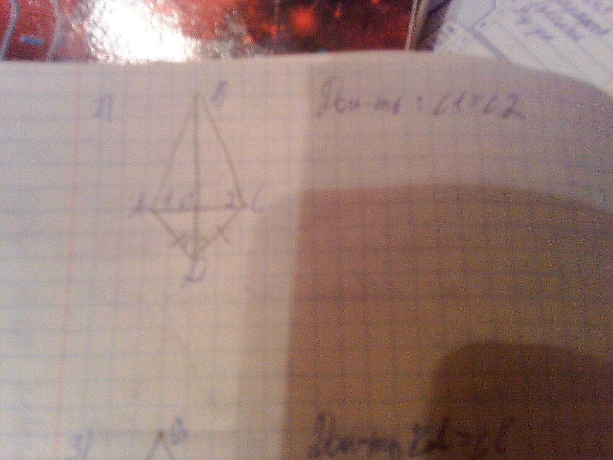 следовательно треугольник ADC - равнобедренный, в равнобедренном треугольнике DO - медиана, биссектриса, высота (по рис)