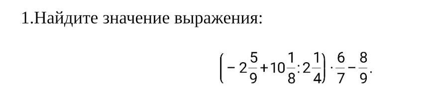 (-2 5/9+10 1/8:2 1/4) * 6/7 - 8/9= 7/9