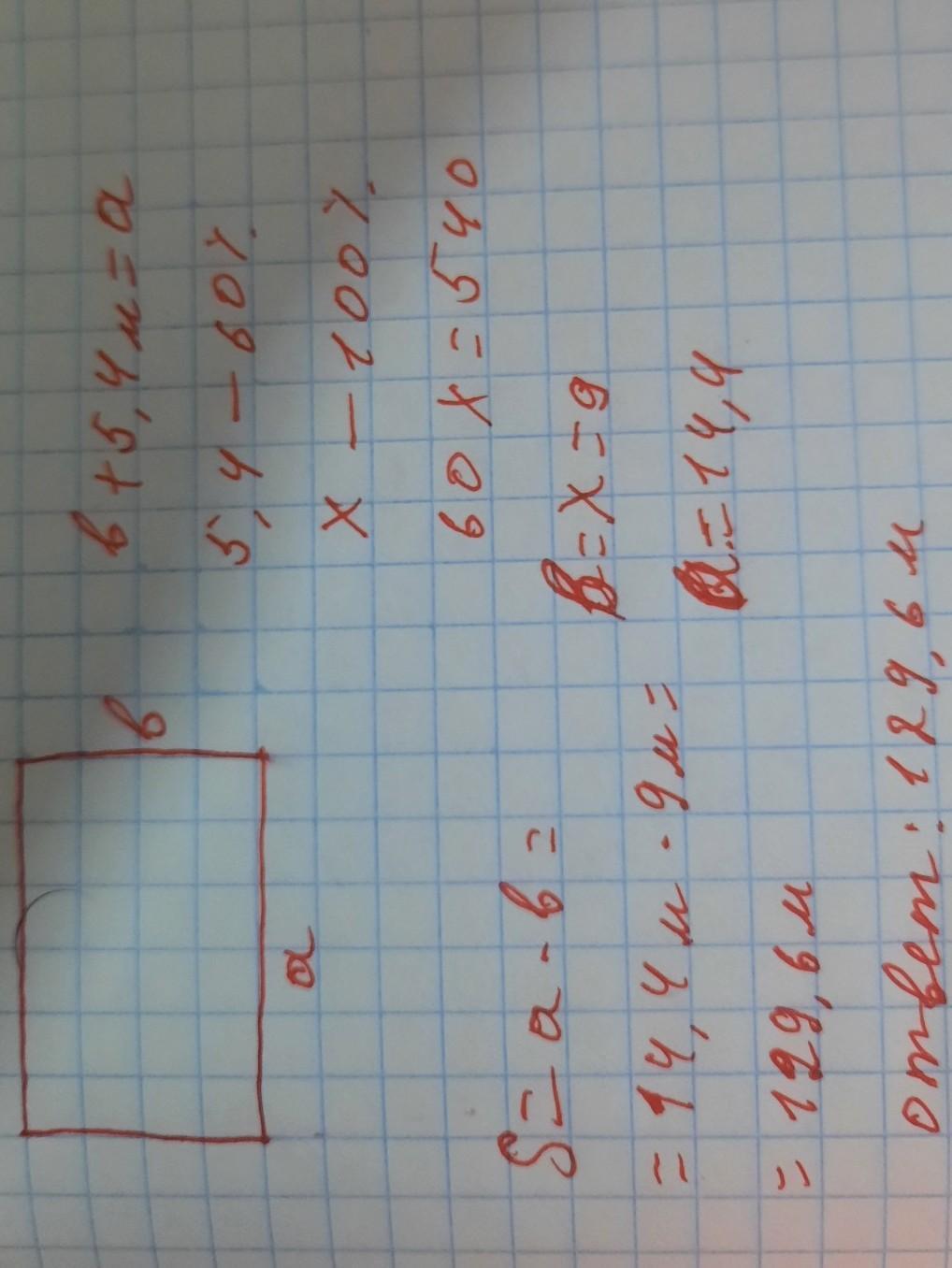 Длина прямоугольника на 5,4 м больше или на 60% больше ширины. Найди площадь прямоугольника.