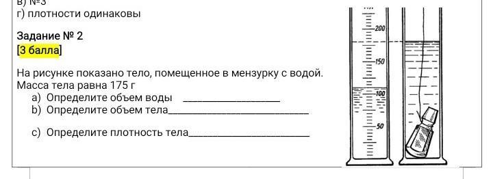 На рисунке показано тело, помещенное в мензурку с водой. Масса тела равна 175 г. помогите пжжжж