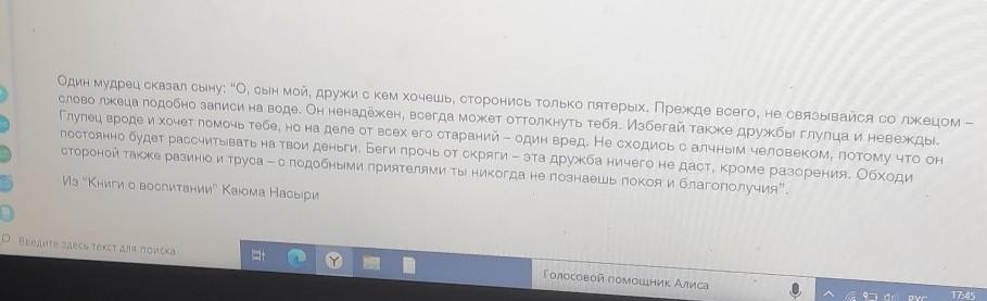 Тема текста - наставления мудреца своему сыну, с кем дружить.