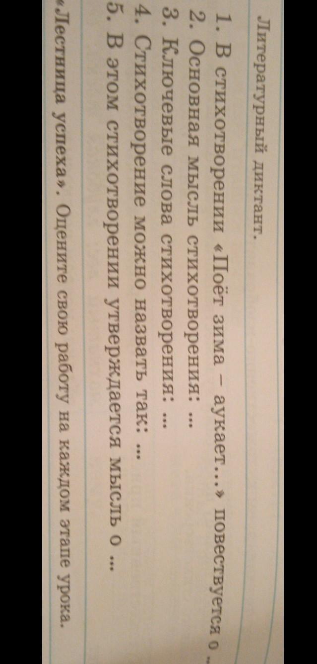 Ответ:1- о природе, красоты и суровости зимней поры года; 2- у природы нет плохой погоды; 3 -...; 4- Чудесное время года - зима; 5- об образе зимы, которая ассоциируется с ласковой матерью, баюкающей свое дитя.