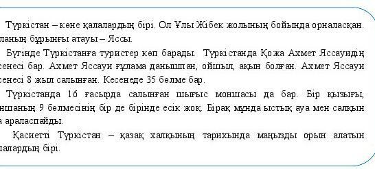 Түркістан – көне қала. Ол бұрын Яссы қала... деп аталған. Қазір қала... орны ғана бар.